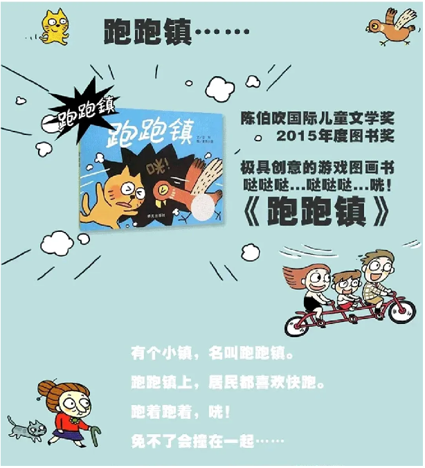 《跑跑镇》是一本创意游戏书,但是创意并不是天马行空的想象,而是通过两个不相关的东西快跑、碰撞在一起后,变成“新”事物;孩子可以从两个不同的对象上观察趣味的元素,进而联想出两个角色碰撞后可能产生的新变化。整本书充满了创意和趣味,跟着哒哒哒的脚步声,一起享受猜测的游戏乐趣吧!