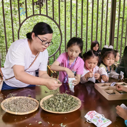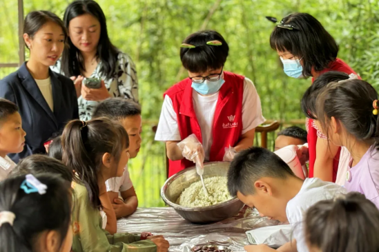 6月8日,孩子们围坐在一起,跟着老师学习唱端午童谣,稚嫩的歌声中充满了对传统节日的热爱和向往。随后在志愿者的带领下孩子们通过听绘本故事、制作传统美食“青团”,认识端午节的由来。