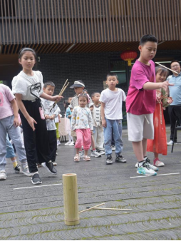 6月9日奇妙的香囊、6月10日彩色的粽子这两场活动中,孩子们参与射五毒游戏、投壶游戏等传统游戏,亲手制作古法香囊和多彩粽子团扇,并阅读相关绘本故事,更加深入地了解端午节的习俗和文化内涵。