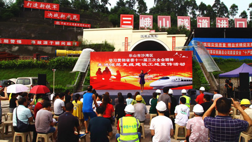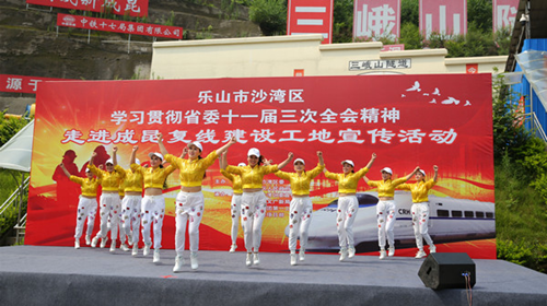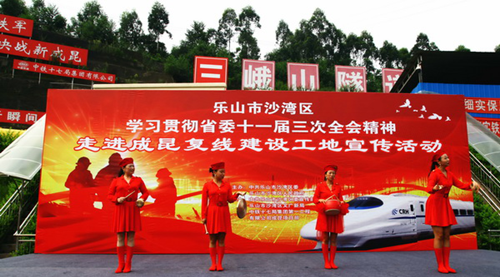为深入学习贯彻落实省委十一届三次全会精神,7月24日上午,由区委、区政府主办,区委宣传部、区文广新局、中铁十七局集团第一工程有限公司成昆项目部承办的学习宣传活动走进火热的成昆复线建设三峨山隧道工地,在为铁路工人送去文化大餐的同时,也把全会精神传递到工人们的心坎里。